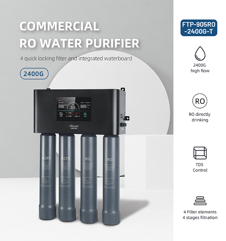 Home > Commercial Water purifier > 2400 GPD Coffee Shop Restaurant Hotel Bar Water Filtration System RO Commercial Water Purification System