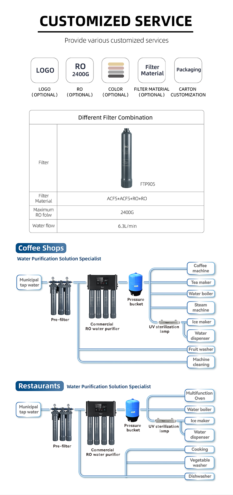 2400 GPD Coffee Shop Restaurant Hotel Bar Water Filtration System RO Commercial Water Purification System